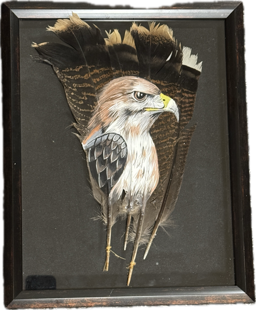 The Hawk (Kekek) is the great observer of the sky. Hawk Framed Feathers carries the medicine of focus and perspective. While we often get caught in the chaos of the details, the Hawk circles above, seeing the landscape as a whole. This artwork teaches us to detach from the immediate drama and look at our lives with clarity. It is a reminder to trust your instincts, sharpen your awareness, and recognize the messages that spirit is sending you.